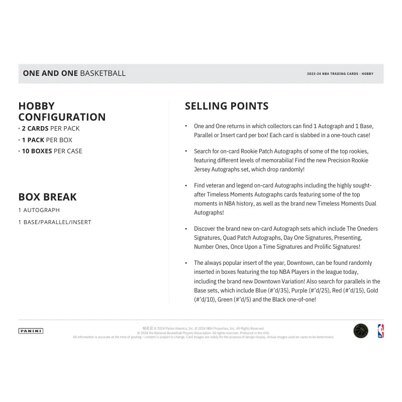 2023/24 Panini One & One Basketball Hobby Box